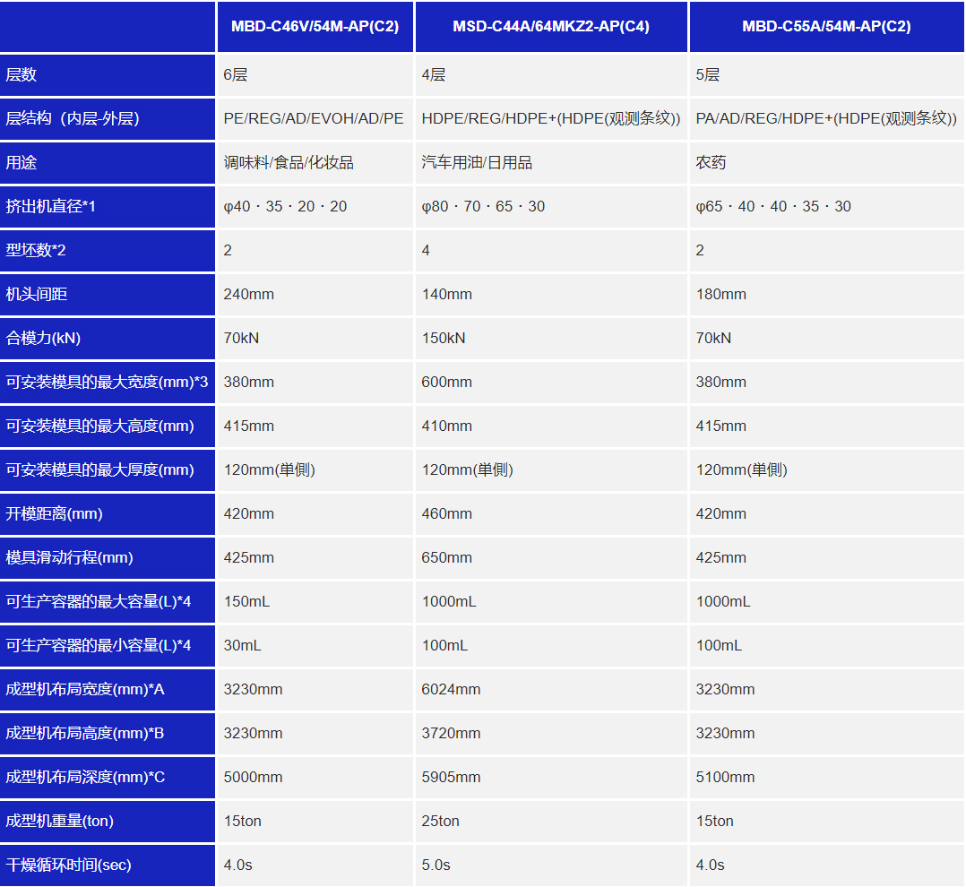 * 3:除上述型号外,我们还提供各种尺寸和合模力的合模装置。 ..