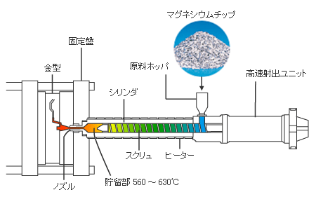 颗粒状镁合金切片在圆筒中加热,并在不暴露于大气的情况下注塑成模具。
