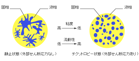 对处于半熔融状态的合金施加剪切力,使固相颗粒化,从而粘度降低,流动性增加的现象。