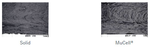 * 缩短循环时间(MuCell 成型使凝固时间缩短 66%)