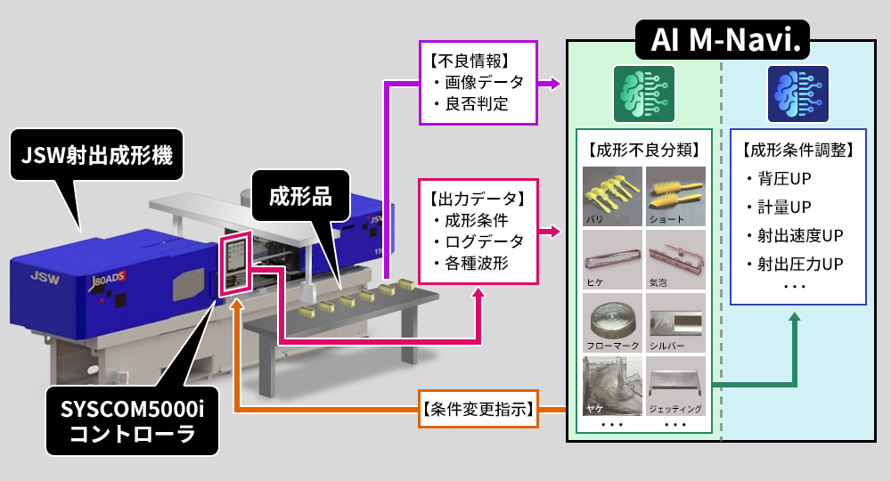 可以通过成型条件检测和纠正的成型缺陷,通过我们独特的 AI 算法(强化学习)自动纠正。