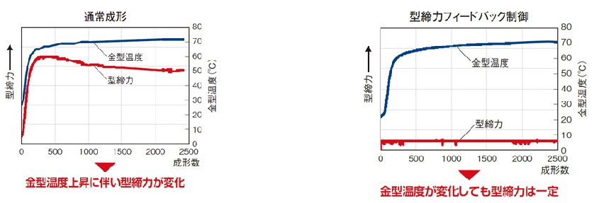合模力FB控制、新的模具保护功能、各种测量稳定性控制有助于提高成型质量